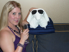 We had our first towel animal awaiting us that night in our room from our steward Al. We took some photos with our new pet elephant and gave him a snack.